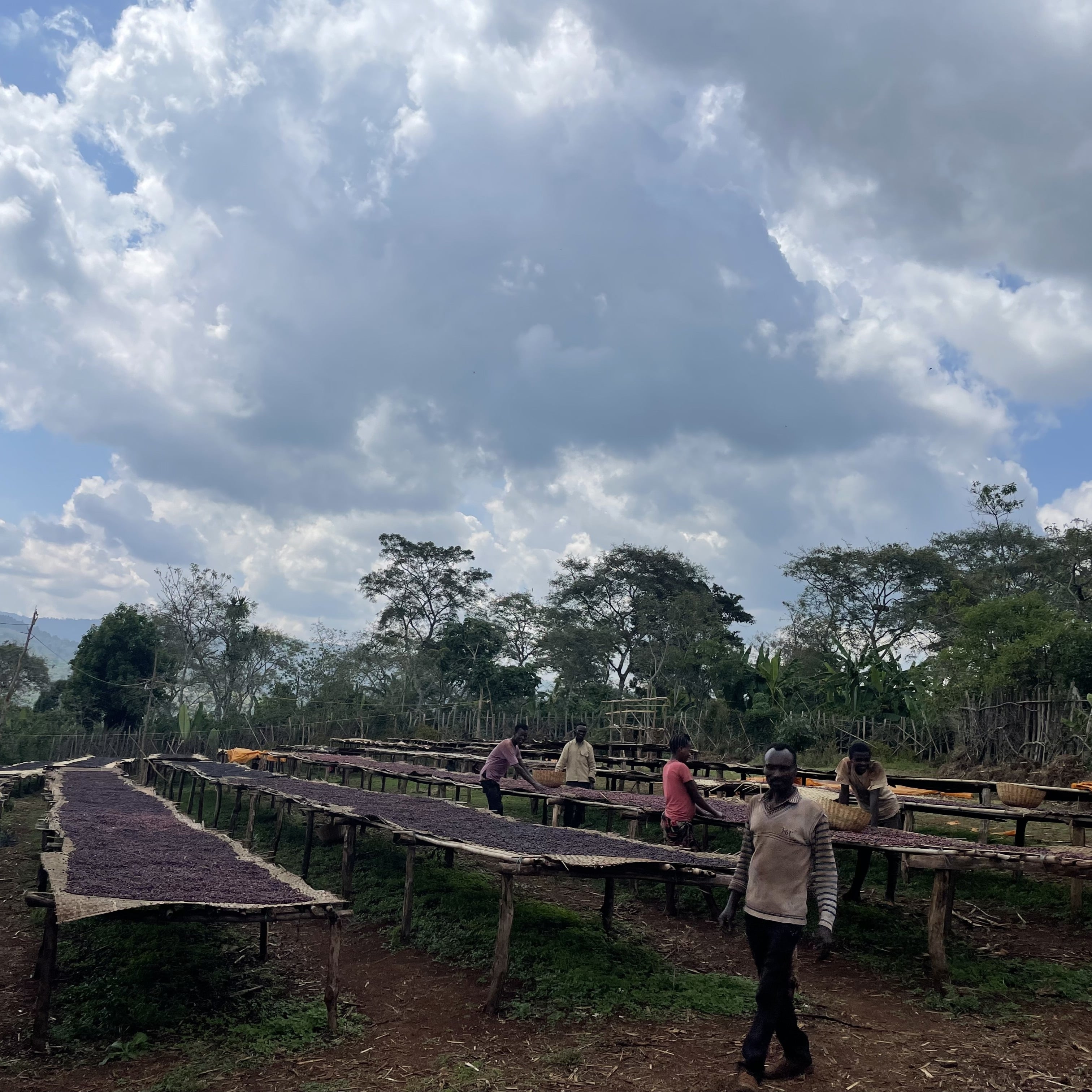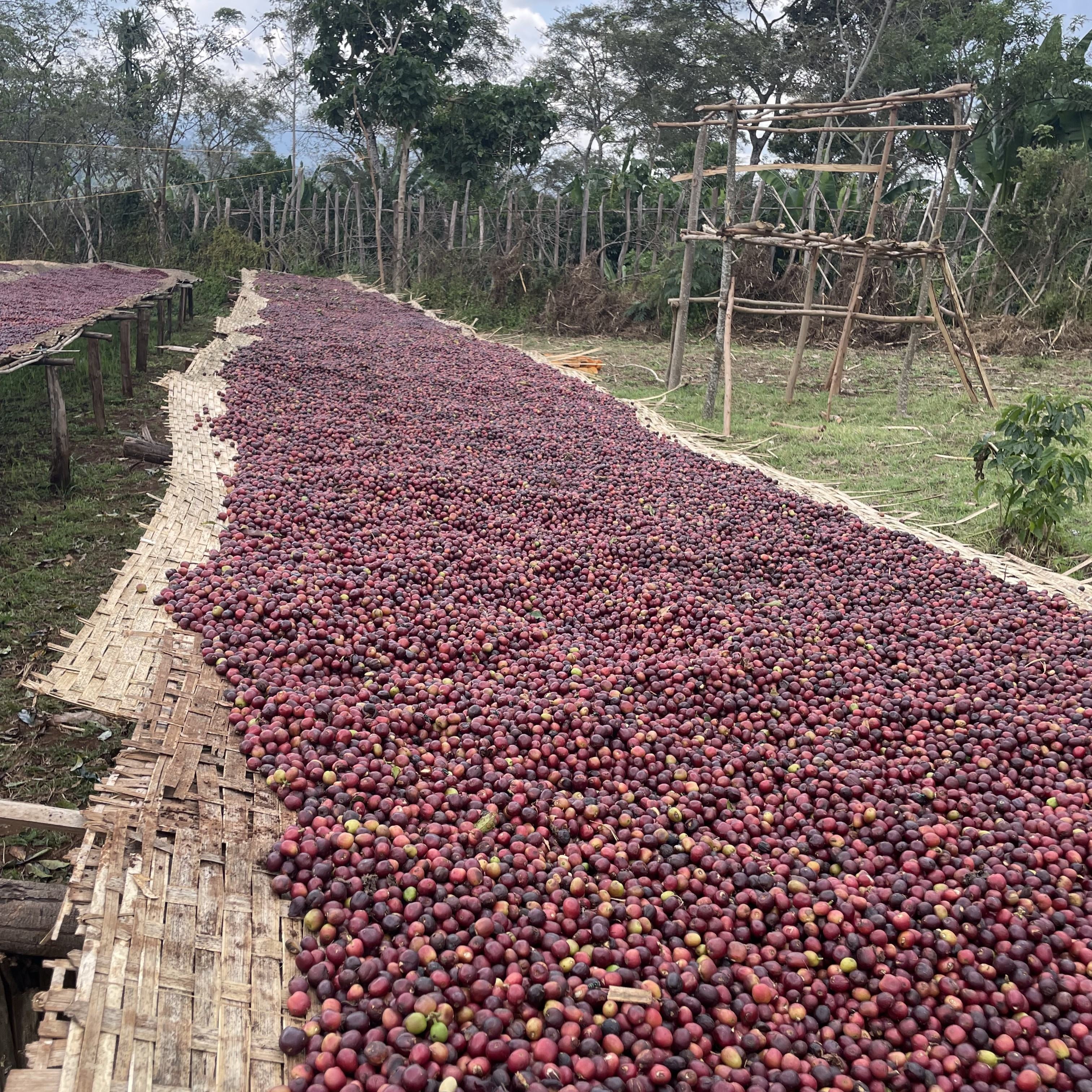 約14.6ヘクタールの農地を所有し、自身の農園で収穫されたチェリーのみを使用した、エチオピアではまだ珍しいシングルファーマーロットです。精製所は風通しの良い高台に位置しており、乾燥に適した環境が整っています。特にナチュラルプロセスにおいては、この安定した乾燥環境が品質を大きく左右します。乾燥中は、日中の強い直射日光や夜間の湿気からチェリーを守るためにカバーをかけ、丁寧に管理されています。
